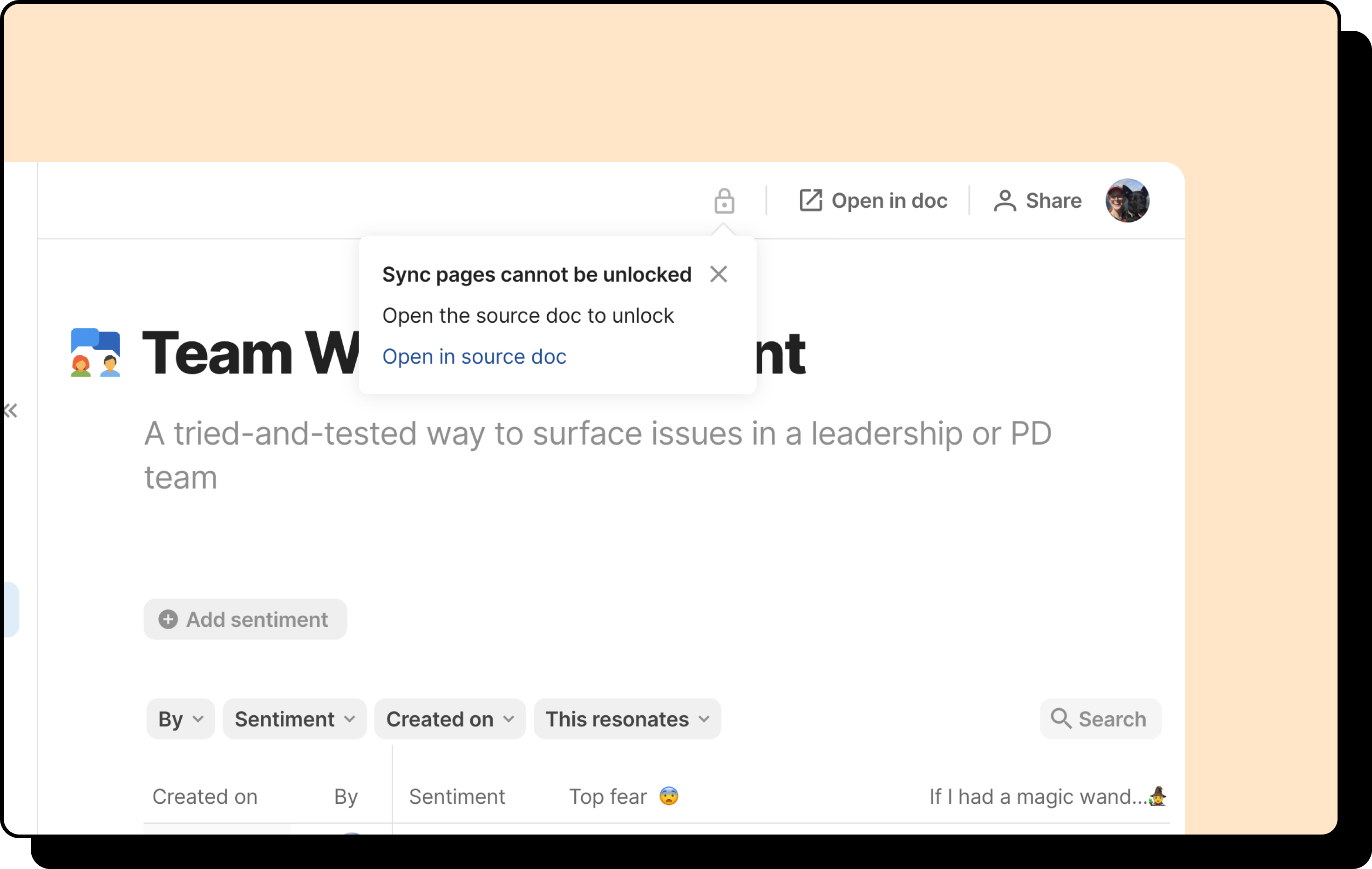 If you’ve chosen the Everyone in this doc option, then no one in the container doc will be able to edit the sync page directly. Anyone who wants to edit this content will have to do it directly via the source doc.