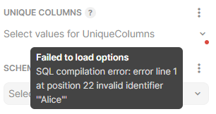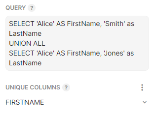 Once you’ve adjust your query, click into the UNIQUE COLUMNS dropdown list again. It may take a few seconds for the list of columns to appear, or for the error message to refresh.