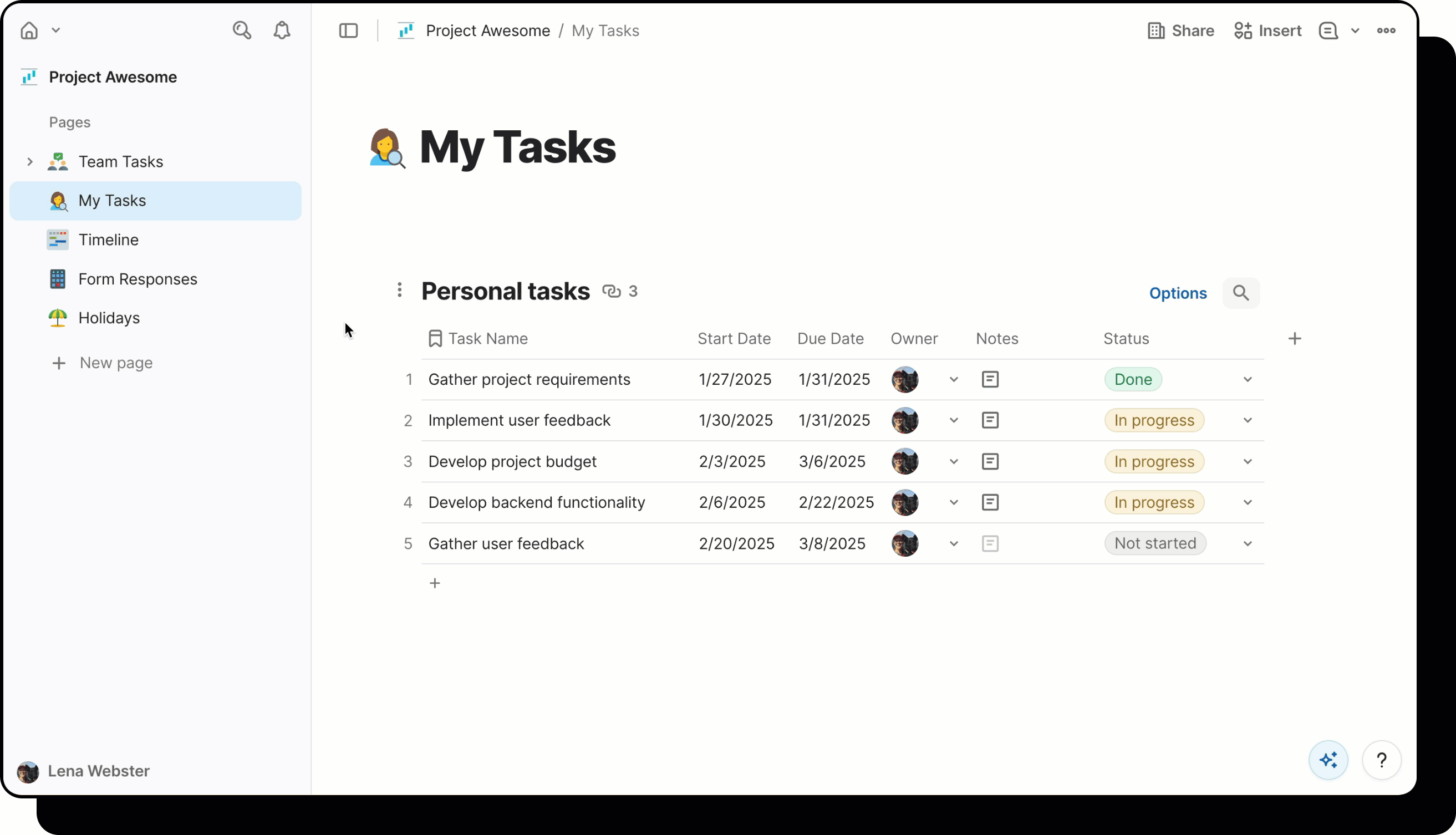 Then you can share or paste the link as needed. If you are pasting the link within the same doc, a hyperlink with the name of the table will be automatically created. If you add the link to a different doc, the link will only display the page title (rather than the table title), but will still lead to the table when clicked.