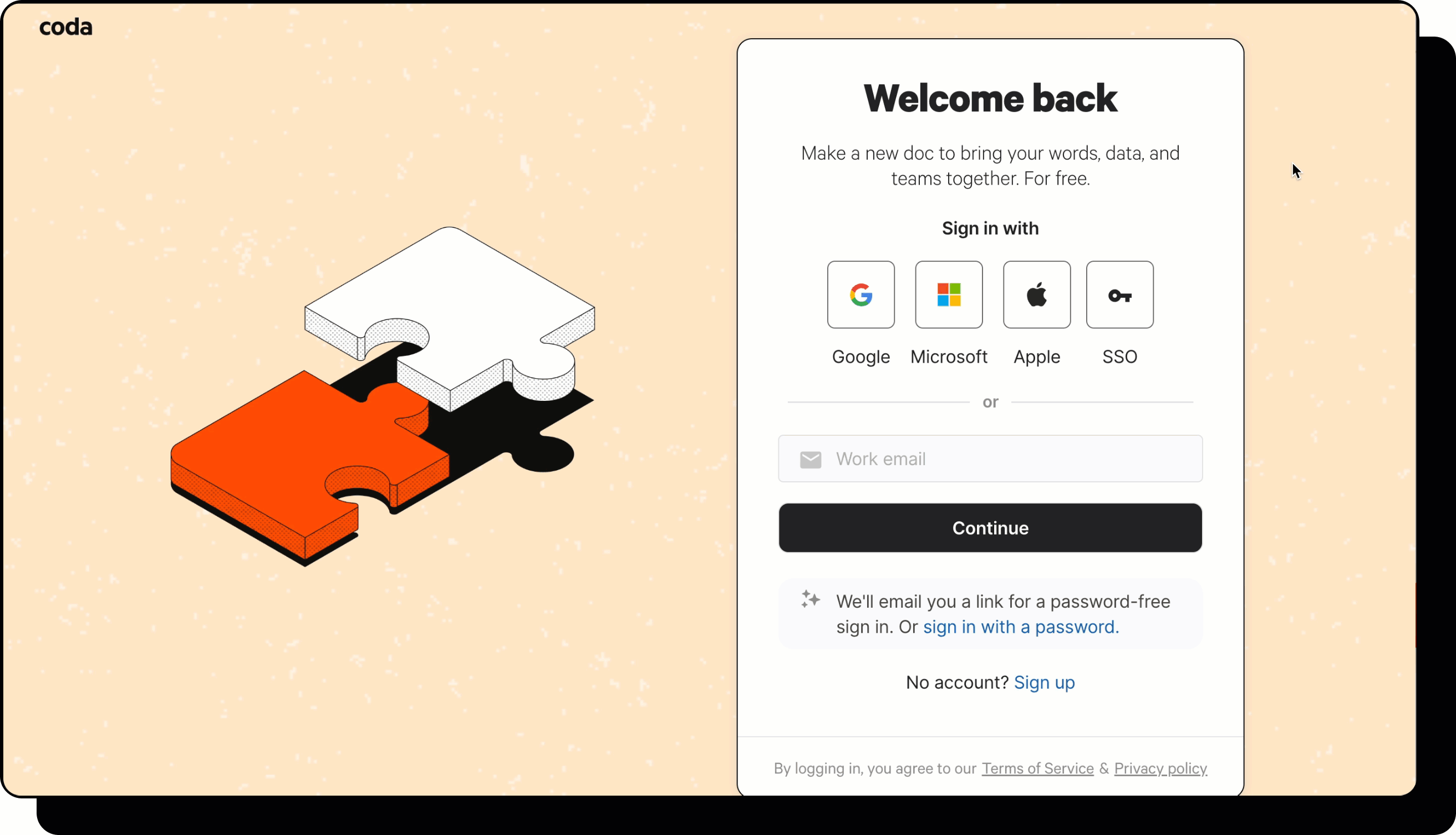If you signed up to Coda with Google, you will not be able to reset your password using the Forgot password? link. Instead, follow Google’s Account recovery steps to regain access to your Google login, then sign in with Coda.