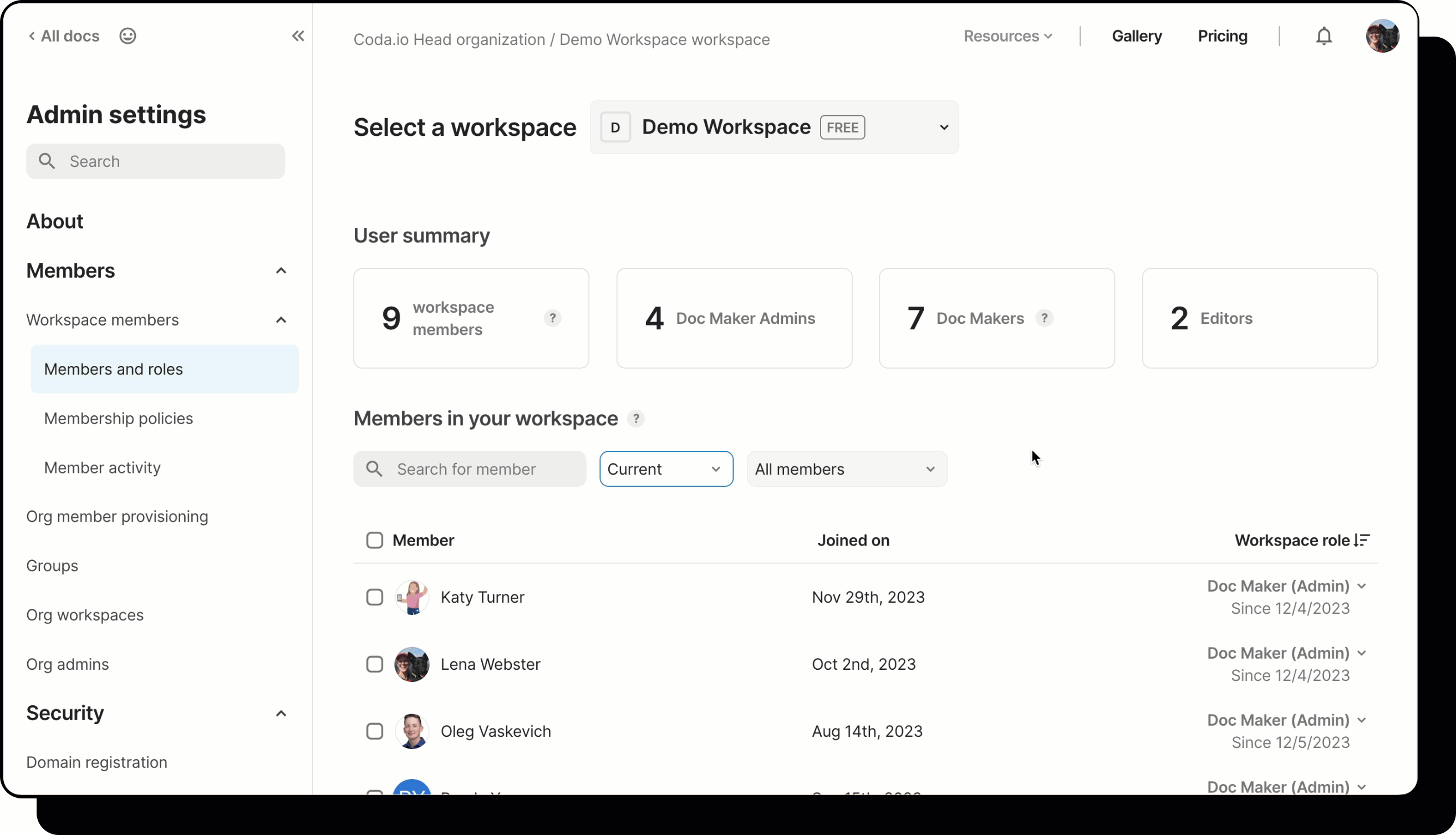 With Coda's workspace offboarding feature, admins can easily remove members from their workspace and reassign ownership of their docs.