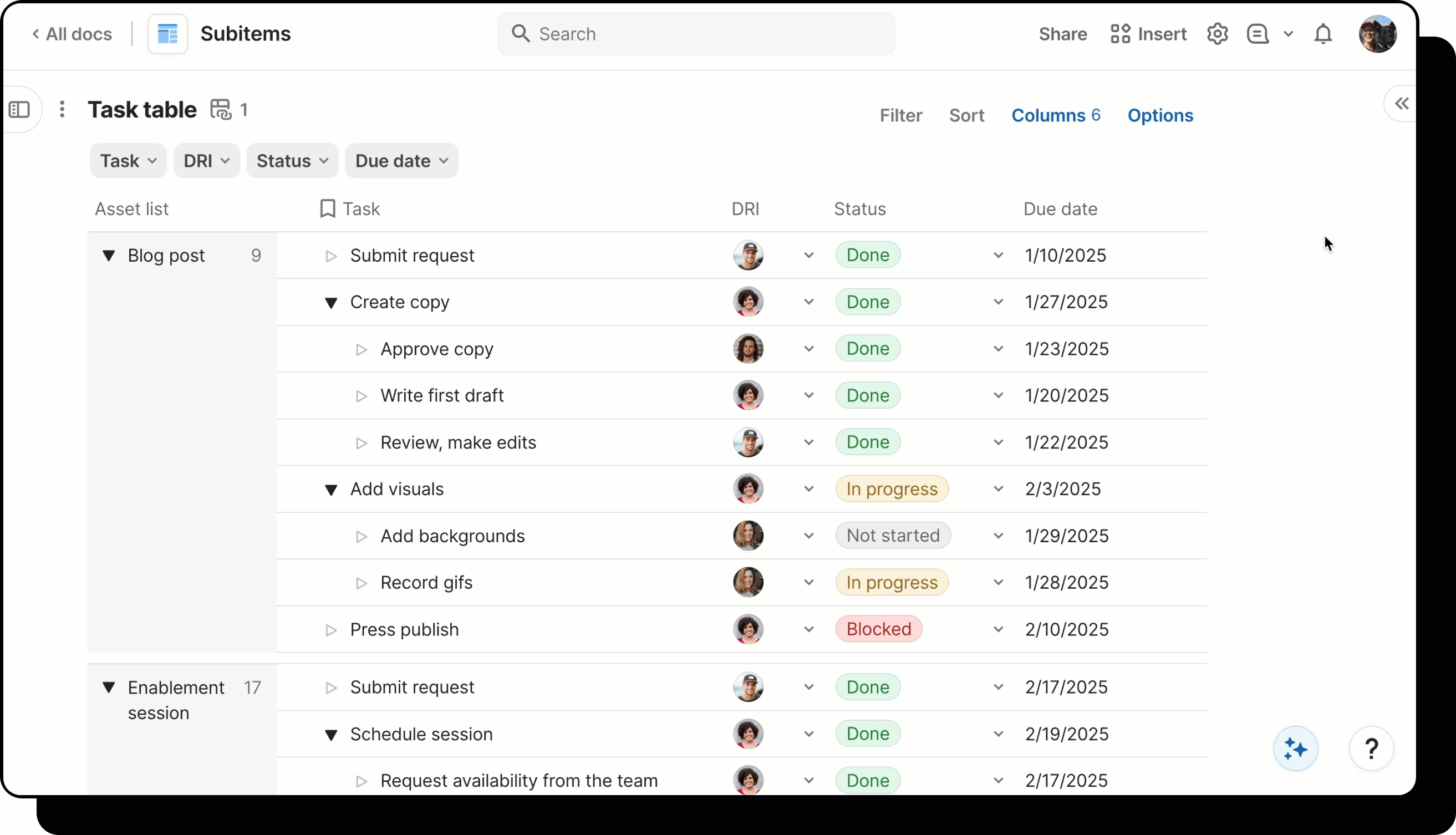 Want to nest rows of your table within other rows? Learn how to enable and start using subitems in your tables.